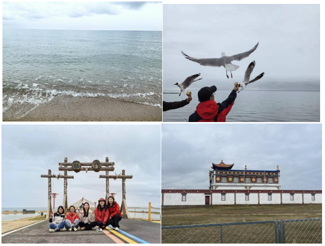初晨還下著蒙蒙細雨,大家乘坐小火車沿途欣賞青海湖畔的美景,伴著清新的泥土草氣,牛羊成群在左,青海湖悠悠浪聲在右,伙伴們都不乏沉淪于此。